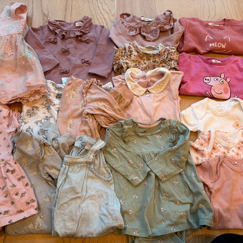 Pent brukt barneklær pakke i størrelse 68 for jente. Inneholder blant annet hustle and Claire ullpysj.