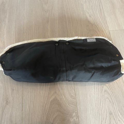 Veldig deilig vogn muffe / håndvarmer til kalde dager. Festes enkelt på vogn/sykkelvognhåndtaket med knapper. Holder deg tørr og varm på hendene.