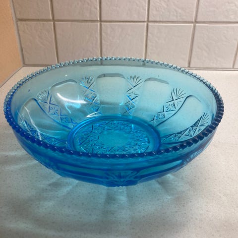 Er noen skår rundt kanten på undersiden, men det er naturlig patina. Ellers veldig godt holdt.