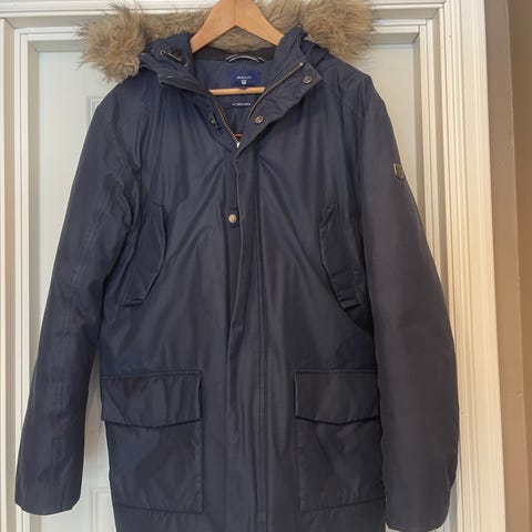 GANT Vinterjakke i brun farge, størrelse M for menn. Jakken er designet for utendørs bruk i vinterforhold og gir beskyttelse mot kulde.