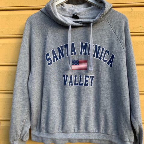 MIA hettegenser «unisex», i størrelse XL og lys blå farge. Genseren har hette med snøring og en frontlomme. Myk og deilig genser designet for komfort og hverdagsbruk.ny pris 42 dollar.