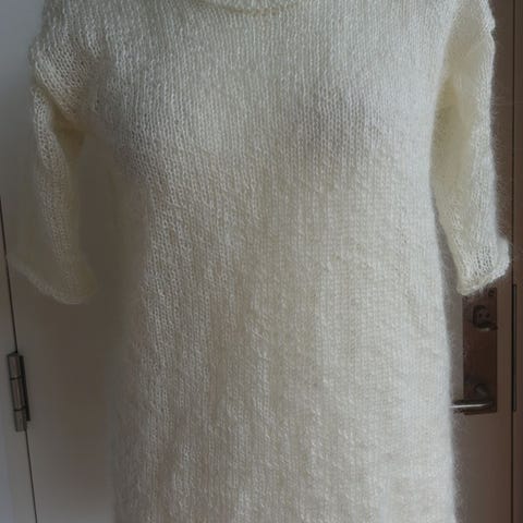 Håndstrikket vest i langhåret ull - mohair. Melkegul farge. Passer til størrelse M, L. Målene: B.55cm.×2 L. 65cm.