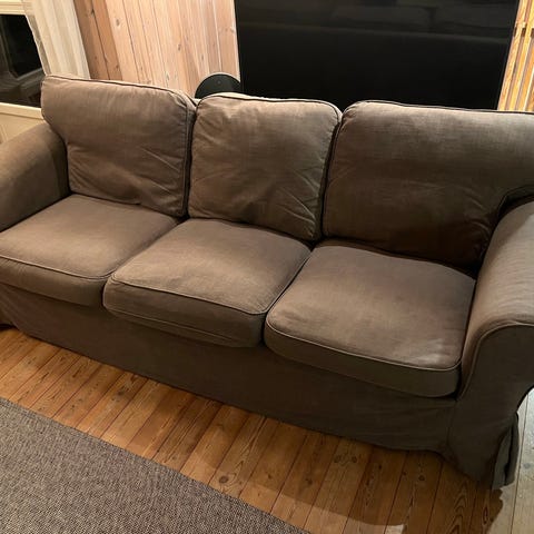 Pent brukt 3-seter til salgs. 2 år gammelt trekk Farge: Tallmyra hvit/svart/grå. Mål se bilde