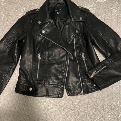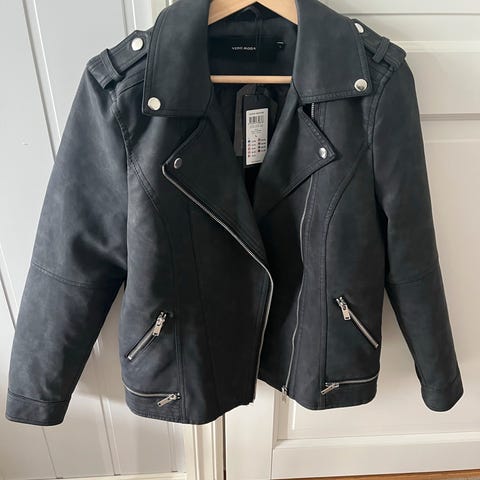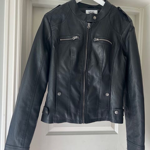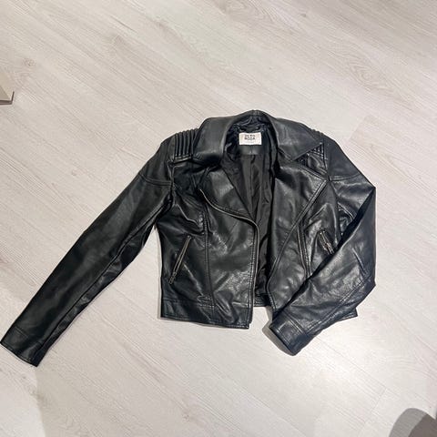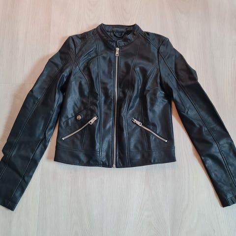 2 jakker i imiterte skinn selges 50kr pr stk. De flasser. Selges derfor billig. De tre første bilde er av Lily Allen jakke i størrelse L. Det siste bildene er av only jakke i størrelse S. Ta gjerne kontakt om du lurer på noe.