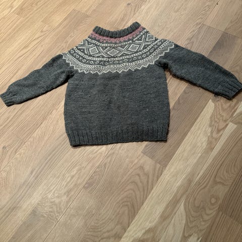 Tykk og god ullgenser med traktor mønster str 3-4år