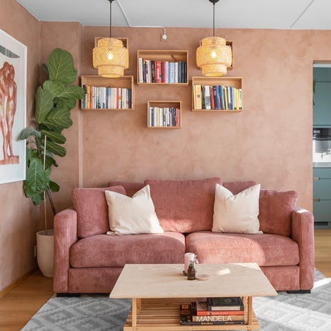 Molly 3-seter sofa, rosa velour – pent brukt,