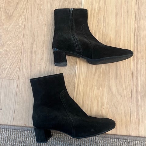 Sorte, semskede skoletter, str 38 med stødige hæler. Brukt 2 ganger. Kr 500. Kan hentes eller sendes for kjøpers regning.