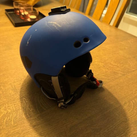 Escape Hjelm i størrelse S, passer hodeomkrets 50-54 cm. Hjelmen er blå og har justerbar passform med feste for hakerem. Egnet for bruk i aktiviteter som krever hodebeskyttelse.