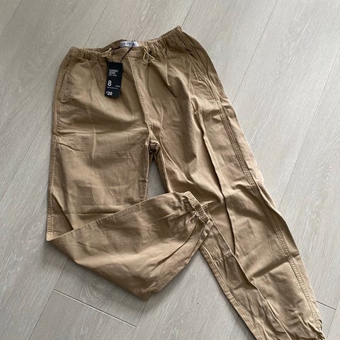 Lindex bukser i brun farge, størrelse L for kvinner. Laget av materiale som gir komfort og funksjonalitet. Bukser med elastisk midje og lommer på sidene.