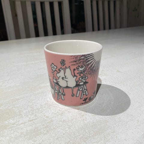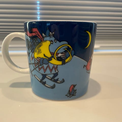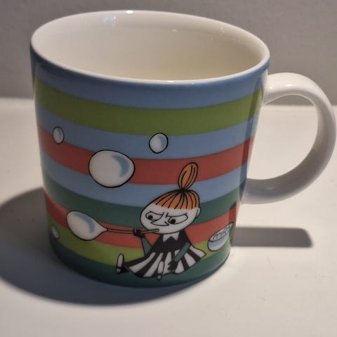 Mummikopp 'Mummi flytter' selges. Spøkelsesstempelet under sier at den ble produsert i august 2013. Kan sendes, men på kjøpers ansvar.