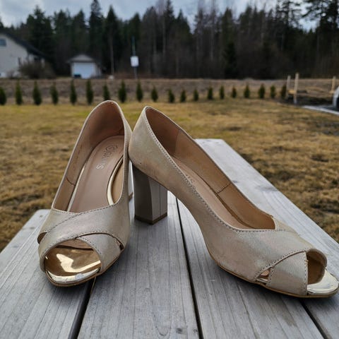 Pent brukt sko fra merket Foxy. Kun brukt et par timer i bryllup.