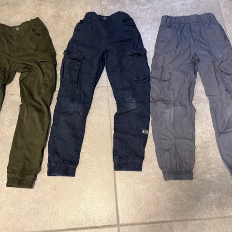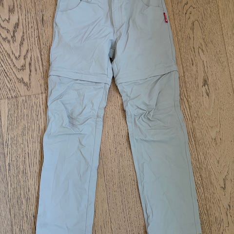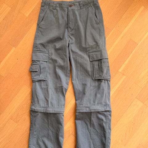 Cargobukse i stretchmateriale, hvor beina kan tas av (glidelås) slik at de kan brukes som både bukse og shorts. Kun brukt på ferie i sommer, så de er i god stand. Størrelse 146 på begge to.