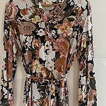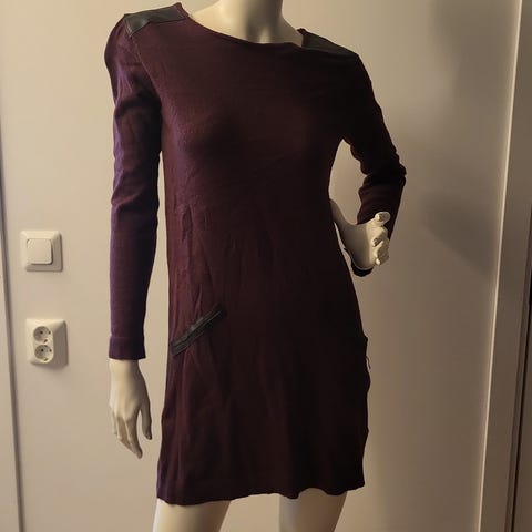 Sennepsgul høyhalset kjole i str 38 fra Primark. Feminint snitt som fremhever midjen og svinger lett ut. Stretchy.