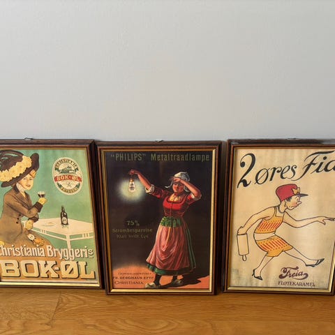 Selger disse to gamle vinreklamene. Veldig fine til å henge på vegg! 300kr per stykk