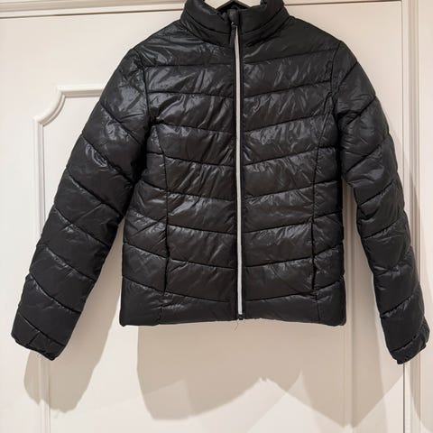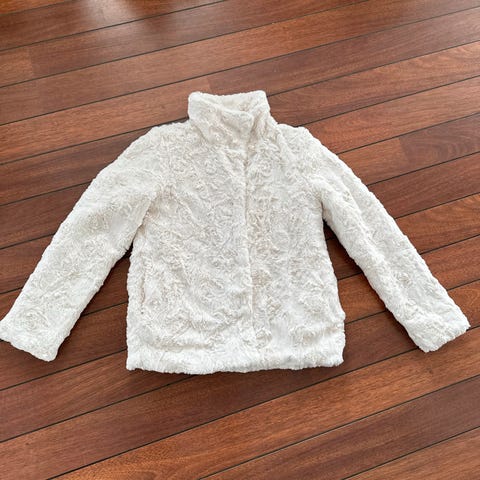 H&M Jakke for barn i størrelse 158. Deilig og myk med lun hette. Et par små merker på ermet. Lite brukt i kun en sesong. Jenta på bildet er 168 cm og jakken er litt liten til henne.