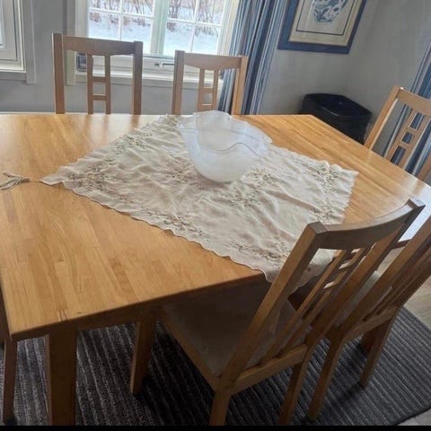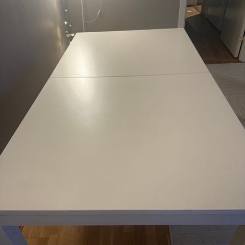 Solid Spisebord fra ikea med to ekstra klaffer (som oppbevares under/i bordet. Ca. 175 cm langt og (+klaffene som er ca. 45 cm brede) og 75 cm bredt. Selges rimelig pga flytting: 250kr.