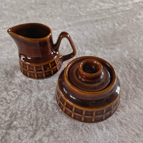 Servise i keramikk med brun glasur.
