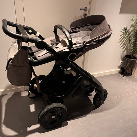 Stokke Trailz barnevogn 2020 modell med justerbart håndtak og sort farge. Vognen har en robust ramme og store hjul for god fremkommelighet. Setet kan justeres for ulike sittestillinger. Materialet er slitesterkt og egnet for daglig bruk.