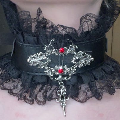 Unikt halsgropsmykke i sort og rosa - goth stil