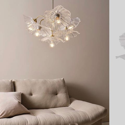 Nydelig lampe med flotte glasskupler og detaljer i gull. Et skikkelig blikkfang i rommet! Se link for detaljer. Ny pris ca kr 5500. Det følger også med pærer til alle kuplene!