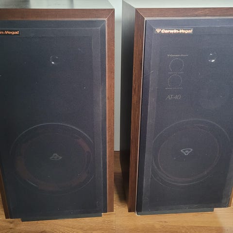 Kraftige høyttalere fra Cerwin Vega, de har fått nye basselementer og spiller meget bra