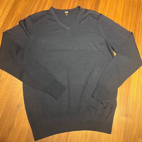Pent brukt v-hals genser fra Uniqlo i en tynn og fin merino-ull.