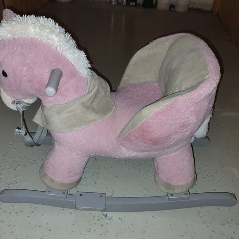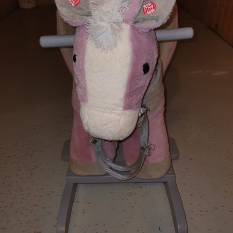 Selger en pent brukt gyngehest. Den er høyere enn vanlig, så barna kan bruke denne lenger enn vanlig.