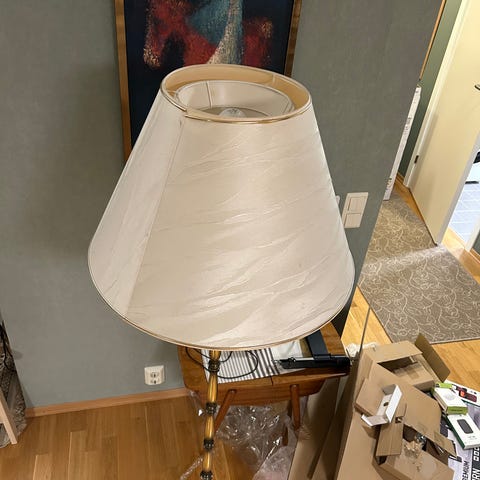 Søt liten 60 talls Retro stålampe med hytte lampeskjerm. Passer perfekt på hytta. Noe bruktmerker i betraktning av alderen. Ellers er lampa i god stand. Pris 800kr. Må hentes på Byåsen.