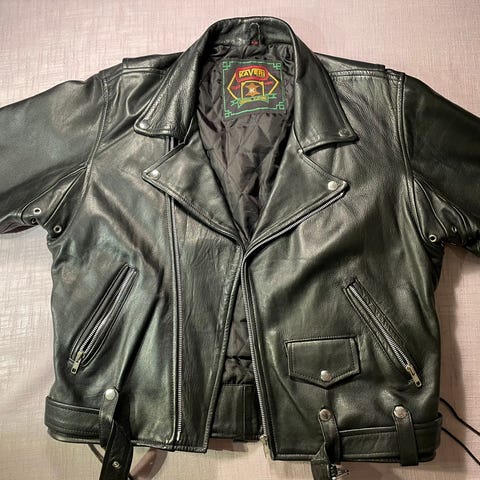 Selger her en ekte Von dutch originals skinnjakke i perfekt stand. Jakken er svært pent brukt, ingen skader, riper, flekker eller slitasje. Dette er en sjelden Y2K bomber style. Ekte skinn i tykk og myk lærkvalitet. Pelskrage( faux fur), store frontlommer med klaff. Brodert von dutch logo på brystet. Brodert tiger patch på armen. Ribbestrikk nederst og på ermene. Retro look som er veldig trendy nå. Jakken er sjeldent til salgs, spesielt i denne stand og med denne kombinasjonen av patches og detaljer. Disse jakkene går og for å være samleobjekter.