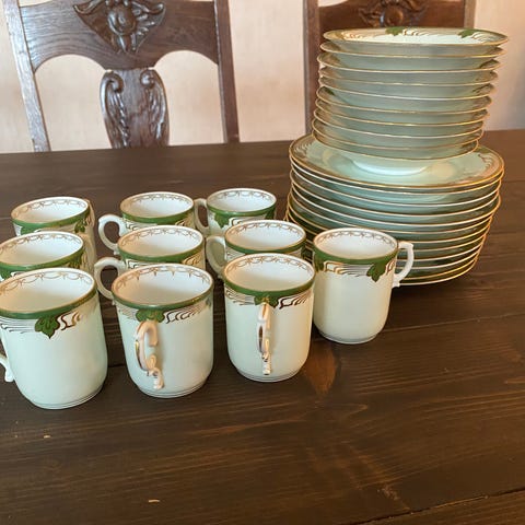 Gammelt kaffeservise med gulldekor til 12 personer, Porsgrund.