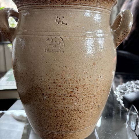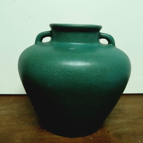 Stor olivengrønn vase H: 30 cm 13 cm i åpningen. Selges hbo 300.-