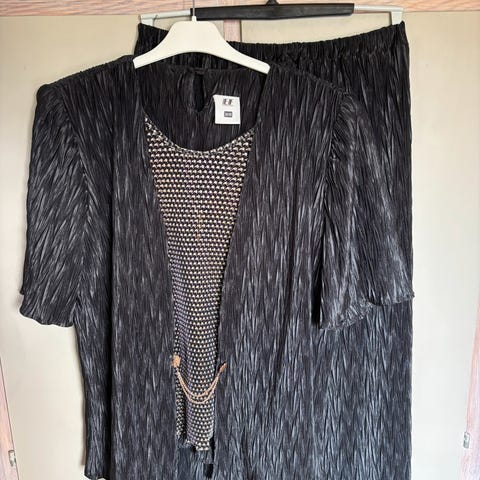 Eksklusivt todelt sett i dyp sort med vakker struktur i stoffet.