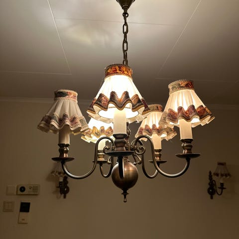 Flott hvit vegglampe hos bort. Ferdig montert (og det var faktisk litt stress). Ble kjøpt ifm visning og salg av hus, så nesten ikke brukt. Diameter på skjermen er 48cm