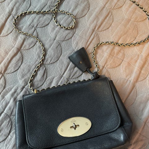 Jeg selger denne fine skatten fra Mulberry. Farge er svart med detaljer i sølv. Noen riper og bruksmerker, men er fortsatt en utrolig fin veske. Kan også brukes som crossover.