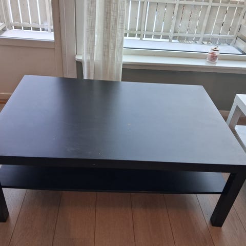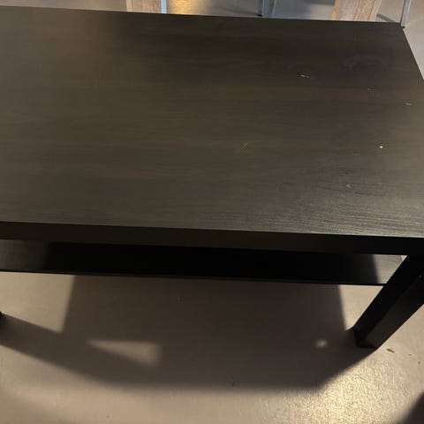 Vårt salongbord fra IKEA gis bort. Det har noen synlige bruksmerker på overflaten, men med litt puss og maling, eller en duk er det så godt som nytt. Fin størrelse, og har en plate under til oppbevaring. Må hentes etter avtale på St. Hanshaugen/ Bislett.