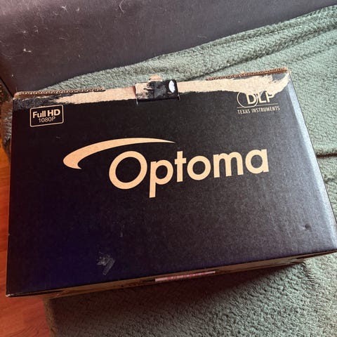 Lyssterk projektor som har fungert godt i et rom med vanlige lamellgardiner, selv på høylys dag.