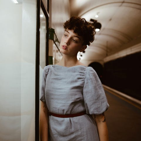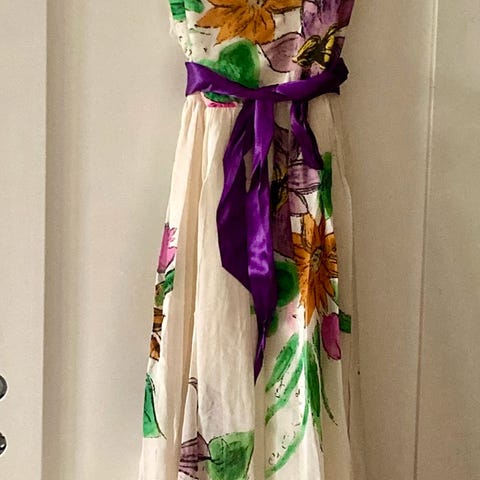 Utrolig kul kjole fra Geny Spielmann aus Zuric, trolig tykk lin el bomull, lite brukt.
