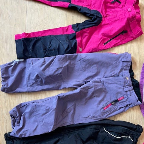 Liten klespakke med 1 Bergens fleecebukse, 1 Jotunheimen turbukse, 1 Reflex turbukse og 1 H&M treningstights