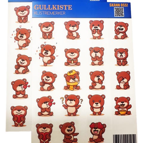 Vi har jule, enhjørning, emojis, bursdag og andre klistremerker ute til salgs.