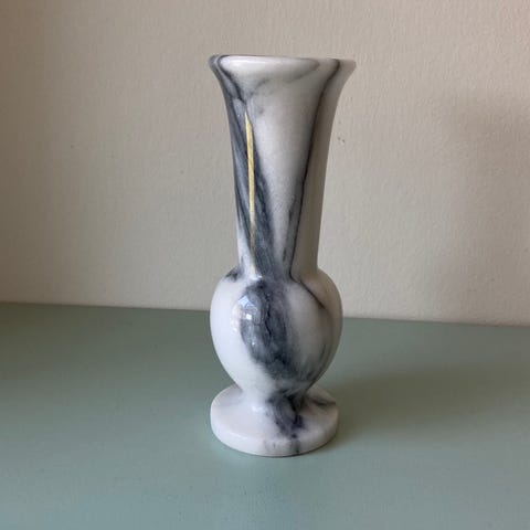 Pen vase i grå marmor med karakteristisk åremønster. Solid og tung kvalitet.