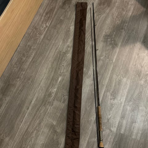 Sølvkroken fiskestang med tilhørende beskyttelsesetui. Fiskestangen har et ergonomisk grep og et robust design egnet for ulike fiskeforhold.