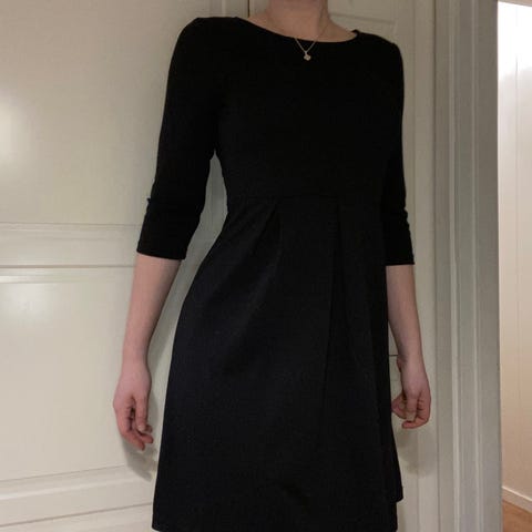 Ellos Hverdagskjole i størrelse 36 med svart bakgrunn og blomsterprint. Kjolen har en løs passform og er egnet for hverdagsbruk.
