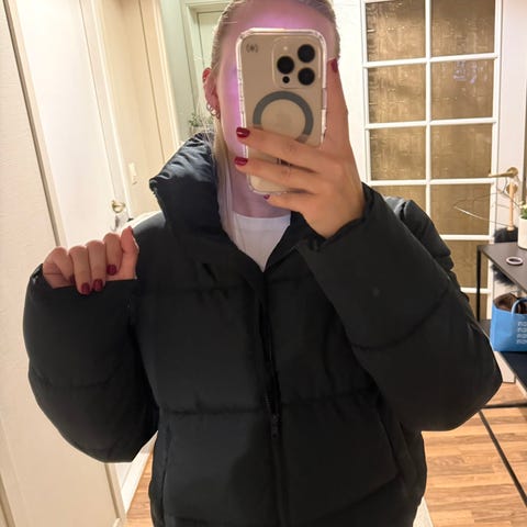 En boblejakke med høy hals og fôring. Jakken har lommer og passer fint til overgangssesongen.