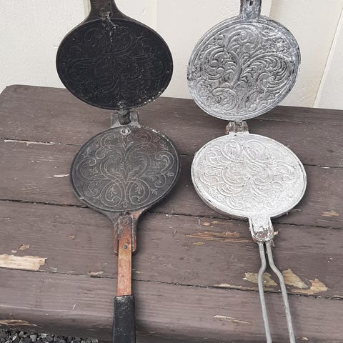 Lage vafler på tur? Gammelt norskprodusert vaffeljern.