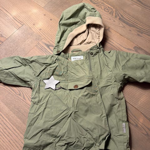 MINI A TURE Thermolite barnejakke i størrelse 86, egnet for både gutter og jenter. Jakken har oransje farge og er laget med Thermolite isolasjon for ekstra varme. Den har hette, flere lommer med knapper og elastisk midje med snor for justering. Materialet er vannavstøtende, og innsiden er foret med mykt fleece for komfort.