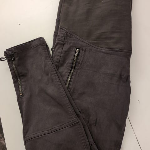 Veldig pent brukt MAMA jeans. Disse buksene sitter svært godt over den voksende magen og har vært en redning da annet tøy ikke lenger har passet. Jeg er en str M og buksen sitter godt i midjen og har rette vide bein. Ser ut som en helt vanlig jeans på og har derfor vært en favoritt under svangerskapet.