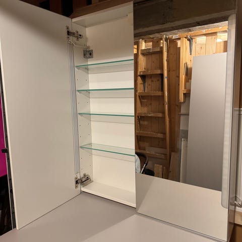 Skapet er ferdig montert og har hengt på bad i et par uker før det ble tatt ned. Befinner seg i sarpsborg, men vi kan ta det med til Oslo eller møtes på veien mellom.