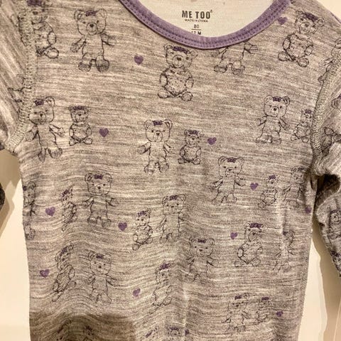 3 ull pysj/hel dress. To av de er str 80 en fra Janus og en fra hust &claire. Den siste fra hust &claire (med sommerfugler) ser jer ikke str i, men den er noe lenger. Så tror den er 86/92.