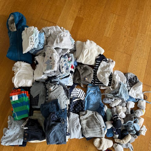 Hvis du venter gutt, har jeg satt sammen en klespakke med ull fra str 56 - 80, fleece dress i str 68 og en parkdress i str 74. En fin startpakke til babygutt født på vinteren.
