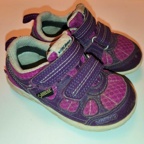 Yttersålen i slitesterk gummi gir godt grep på de fleste underlag. En forsterket tå- og hælkappe gir barnet ekstra beskyttelse og skoene lengere levetid.
